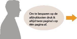 Geef [2 op 1] op als de gebruikersstandaard in het het printerstuurprogramma. De volgende afdruktaken worden zodanig verricht dat elke twee pagina´s worden verkleind en op één pagina worden afgedrukt. De standaardinstellingen wijzigen