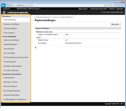 Sommige instellingen kunnen uitsluitend worden gewijzigd als u zich aanmeldt in de systeembeheerdersmodus.