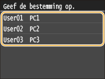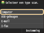 De volgorde van het scannen van een document en het opslaan op een computer kan alleen worden uitgevoerd wanneer vanaf het apparaat wordt gescand. Voer de scan uit terwijl u opgeeft op welke computer de documenten worden opgeslagen, geef op of de documenten in kleur of in zwart-wit worden gescand, of de documenten worden opgeslagen als PDF- of JPEG-bestanden en geef de overige instellingen op.