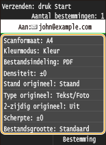 Als u e-mails direct vanaf het apparaat wilt verzenden, moet u eerst voorbereidingen treffen, inclusief mailserverinstellingen opgeven. Scan-instellingen configureren (E-mail verzenden, I-Faxes verzenden & ontvangen)