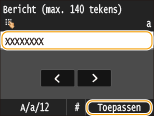Voer de tekst van het bericht in met de numerieke toetsen en tik op <Toepassen>.