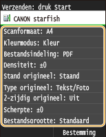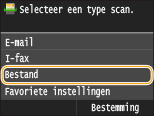 Als u een combinatie van instellingen wilt opslaan voor eenvoudig gebruik: Veelgebruikte scaninstellingen registreren (E-Mail/I-fax/Gedeelde map/FTP-server)