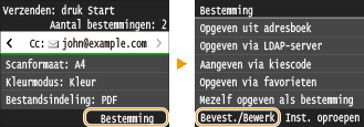 U kunt een bestemming selecteren uit de drie laatst gebruikte bestemmingen. Als u een eerder gebruikte bestemming opgeeft, worden ook de laatst gebruikte scaninnstellingen, zoals de dichtheid, voor die bestemming geselecteerd.