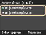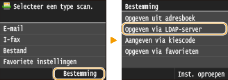 Als in uw kantooromgeving een LDAP-server is geïnstalleerd, kunt u ook met behulp van gebruikersinformatie op de server een bestemming opgeven. Ga via het apparaat naar de LDAP-server om naar de juiste gebruikersinformatie te zoeken en dat als bestemming op te geven.
