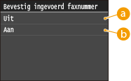 Selecteer deze optie als u het scherm voor het bevestigen van faxnummers wel wilt weergeven.