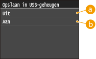 Selecteer deze optie om te voorkomen dat gegevens worden opgeslagen op een USB-geheugenapparaat. Gescande gegevens kunnen niet worden opgeslagen op het USB-geheugenapparaat.
