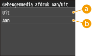 Tik op <Geheugenmedia afdruk Aan/Uit>.