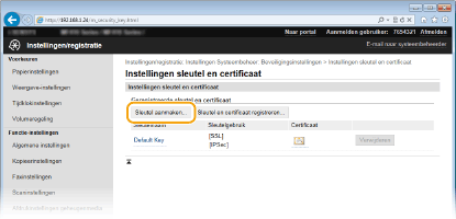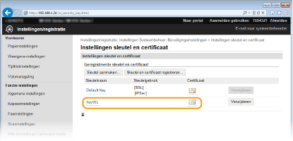 Klik op [Sleutelnaam] of [Certificaat] zodat het certificaat wordt geregistreerd.