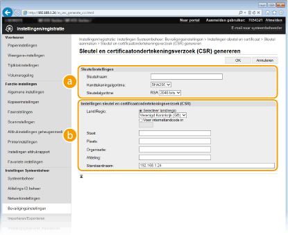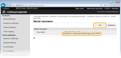 [Instellingen sleutel en certificaatondertekeningsverzoek (CSR)]