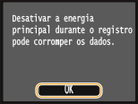 O registo é iniciado. Aguarde que a mensagem <Instalação concluída.Em vigor assim que oequipamento for DESLIGADO eLIGADO.> apareça.
