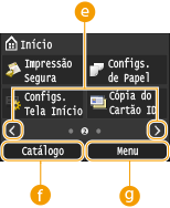 <Configs.Tela Início>Permite alterar a ordem de visualização dos botões do ecrã Início. Personalizar o ecrãInício