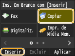 Toque no botão onde pretende inserir um espaço em branco e toque em <Inserir>.