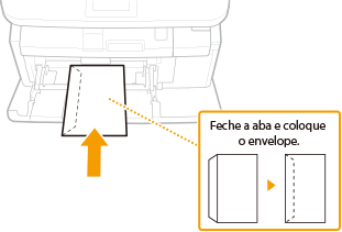 Esta secção descreve como colocar envelopes na orientação pretendida e também os procedimentos que é necessário efetuar antes de colocar envelopes. Para ver uma descrição do procedimento geral de colocação de envelopes na gaveta de papel ou no tabuleiro multifuncional, consulte Colocar papel no tabuleiro multifuncional.