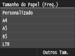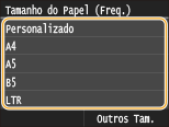 Se o ecrã mostrado acima não aparecer quando o papel é colocadoSe colocar sempre o mesmo papel no tabuleiro multifuncional, pode ignorar as operações de definição do papel registando o tamanho e o tipo do papel como predefinição. No entanto, o ecrã mostrado acima não aparece se registar a predefinição. Para aceder ao ecrã, selecione <Especificar ao Colocar Papel> (Registar predefinições de papel para o tabuleiro multifuncional).