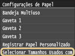 Pode certificar-se de que apenas os tamanhos de papel mais utilizados são apresentados no ecrã para selecionar a definição de tamanho do papel.