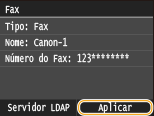 O nome, número de fax ou endereço de correio eletrónico do utilizador selecionado que se encontram registados no servidor LDAP serão colocados no campo de destino.