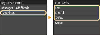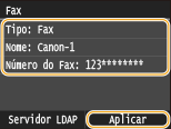 <Configurações de Fax>. No entanto, as definições efetuadas a partir de <Catálogo> são ativadas para as definições detalhadas de destinos registados no livro de endereços. |