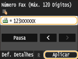 Introduza a cadeia de caracteres para pesquisa do alvo utilizando as teclas numéricas e toque em <Aplicar>.