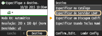 O número máximo de destinos que pode especificar utilizando as teclas numéricas em conjunto com um servidor LDAP é 10. Por exemplo, se tiver especificado três destinos utilizando as teclas numéricas, pode especificar até sete destinos utilizando um servidor LDAP.