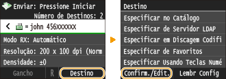 Selecione <Destino>  <Confirm./Edit.>.