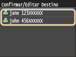 Antes de tocar em <Destino> no passo 1, pode tocar em  /  para alternar entre os destinos especificados. Localize o destino que pretende apagar e prima  .
