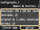 Verifique os detalhes das definições a serem registadas e toque em <Aplicar>.