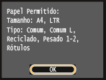 Certifique-se de que colocou na máquina o tamanho e o tipo de papel apresentados no ecrã e toque em <OK>.