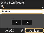 Introduza a palavra-passe utilizando as teclas numéricas e toque em <Aplicar>.