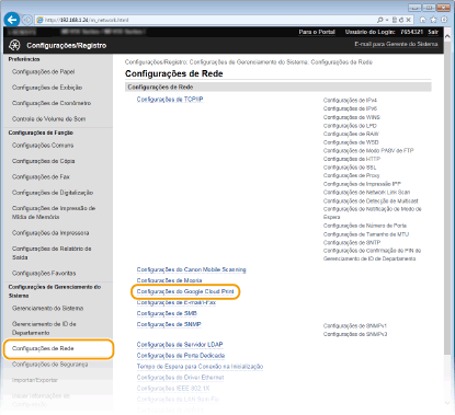 [Configurações do Google Cloud Print].