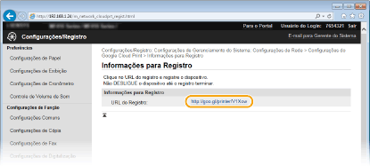 Clique na ligação do URL apresentado para [URL do Registro].