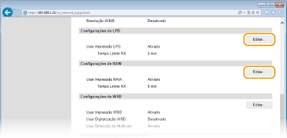 Clique em [Editar] em [Configurações de LPD] ou [Configurações de RAW].