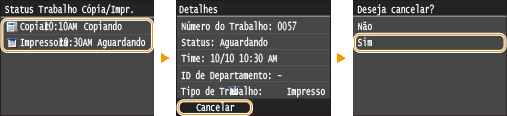 Cancelar a partir da UI RemotaPode cancelar a impressão a partir da página [Status do Trabalho] na UI Remota: Verificar o estado atual de documentos de impressão