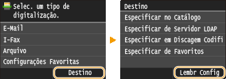 Pode selecionar um destino de entre os últimos três destinos utilizados. Quando especifica um destino utilizado anteriormente, a máquina configura também as mesmas definições de digitalização (por exemplo, a densidade) que utilizou da última vez que enviou documentos para o destino em questão.