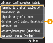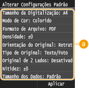 . Se alterar essas predefinições para as adequar às operações que efetua frequentemente, não será necessário configurar as mesmas definições sempre que quiser digitalizar.