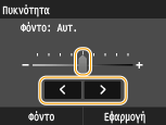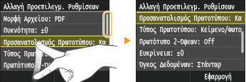 για να προσαρμόσετε τη ρύθμιση με βάση την παρεχόμενη κλίμακα. Μπορείτε, επίσης, να προσαρμόσετε μια ρύθμιση σύροντας το ρυθμιστικό με το δάχτυλό σας προς τα αριστερά ή προς τα δεξιά.