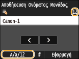 Πατήστε επανειλημμένα το <A/a/12> έως ότου επιλεχθεί το <A>.