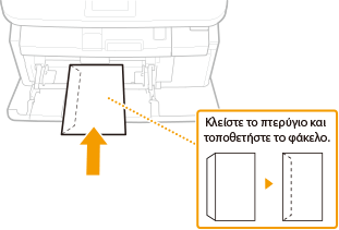 Σε αυτή την ενότητα περιγράφεται ο τρόπος τοποθέτησης των φακέλων με τον προσανατολισμό που θέλετε, καθώς και οι διαδικασίες που πρέπει να ολοκληρώσετε προτού τοποθετήσετε τους φακέλους. Για περιγραφή της γενικής διαδικασίας για την τοποθέτηση φακέλων στο συρτάρι χαρτιού ή στον δίσκο πολλαπλών χρήσεων, ανατρέξτε στην ενότητα Τοποθέτηση χαρτιού στον δίσκο πολλαπλών χρήσεων.