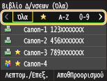 Μπορείτε να καταχωρίσετε τους προορισμούς φαξ/σάρωσης που χρησιμοποιείτε συχνά στο Βιβλίο διευθύνσεων και να τους επιλέγετε εύκολα όταν χρειάζεται. Η αναζήτηση των προορισμών μπορεί να γίνει αλφαβητικά, από τις λίστες του Βιβλίου διευθύνσεων ή πληκτρολογώντας τριψήφιους αριθμούς (κωδικοί μνήμης). Μπορείτε επίσης να καθορίσετε προορισμούς πιο γρήγορα, χρησιμοποιώντας τις παρακάτω δυνατότητες.