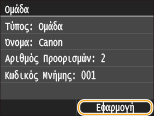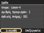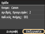 Μετά την καταχώριση προορισμών σε μια ομάδα, μπορείτε να αλλάξετε το περιεχόμενο των καταχωρισμένων πληροφοριών. Για παράδειγμα, μπορείτε να αλλάξετε το όνομα της ομάδας ή τον αριθμό κωδικού μνήμης, να προσθέσετε/διαγράψετε προορισμούς και ούτω καθεξής.