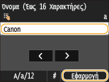 Εισαγάγετε το όνομα χρησιμοποιώντας τα αριθμητικά πλήκτρα και πατήστε <Εφαρμογή>.