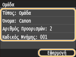 Μπορείτε να συνδυάσετε πολλούς προορισμούς σε ομάδες. Μπορείτε να καταχωρίσετε έως και 299 προορισμούς (100 προορισμούς για email) σε μία ομάδα. Μετά την καταχώριση μιας ομάδας, μπορείτε να την επεξεργαστείτε ή να τη διαγράψετε.
