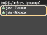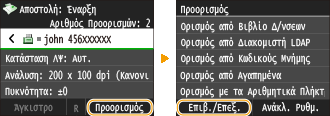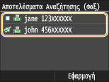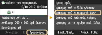 Αν στο γραφείο σας υπάρχει εγκατεστημένος διακομιστής LDAP, μπορείτε να καθορίσετε έναν προορισμό χρησιμοποιώντας τα στοιχεία χρήστη στον διακομιστή. Προσπελάστε τον διακομιστή LDAP μέσω της συσκευής για να αναζητήσετε τα κατάλληλα στοιχεία χρήστη και να τα καθορίσετε ως προορισμό.