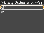 <Ρυθμίσεις Κλειδώματος σε Μνήμη>