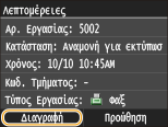 Μπορείτε να ελέγξετε τις αναλυτικές πληροφορίες σχετικά με τα έγγραφα που είναι αποθηκευμένα στη μνήμη, συμπεριλαμβανομένων των αριθμών φαξ αποστολέων και τον αριθμό των απεσταλμένων σελίδων, και στη συνέχεια να διαγράψετε τα έγγραφα που δεν είναι απαραίτητα.