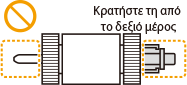 ![]() ![]() Φροντίστε να κρατήσετε το δεξί μέρος του στελέχους του κυλίνδρου χαρτιού. Μην κρατήσετε το αριστερό μέρος του στελέχους.