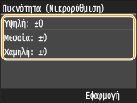Εάν η επιλογή <Εξοικονόμηση Γραφίτη> έχει οριστεί σε <On>, δεν μπορείτε να χρησιμοποιήσετε αυτήν τη λειτουργία προσαρμογής. Εξοικονόμηση Γραφίτη