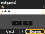 Εισαγάγετε τον κωδικό πρόσβασης χρησιμοποιώντας τα αριθμητικά πλήκτρα και αγγίξτε <Εφαρμογή>.