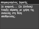 Εάν δεν εκτελεστεί σάρωση εντός του καθορισμένου χρονικού διαστήματος μετά την εμφάνιση της ακόλουθης οθόνης (η συσκευή έχει οριστεί σε κατάσταση σύνδεσης για σάρωση), η συσκευή μεταβαίνει αυτόματα σε κατάσταση εκτός σύνδεσης. Καθορίστε το χρονικό διάστημα, μετά το πέρας του οποίου η συσκευή θα μεταβεί σε κατάσταση εκτός σύνδεσης. Μπορείτε επίσης να ορίσετε ώστε η συσκευή να παραμένει συνεχώς συνδεδεμένη.