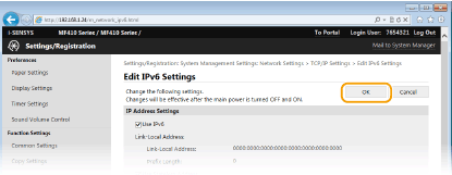 Έλεγχος ορθότητας ρυθμίσεωνΒεβαιωθείτε ότι η οθόνη Remote UI (Απομακρυσμένο περιβάλλον εργασίας) μπορεί να εμφανιστεί με τον υπολογιστή σας, όταν χρησιμοποιείτε τη διεύθυνση IPv6 του μηχανήματος. Εκκίνηση του Remote UI (Απομακρυσμένο περιβάλλον εργασίας)