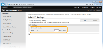 Επιλέξτε το πλαίσιο ελέγχου για εκτύπωση μέσω RAW. Όταν δεν χρησιμοποιείτε εκτύπωση RAW, καταργήστε την επιλογή του πλαισίου ελέγχου. [RX Timeout]